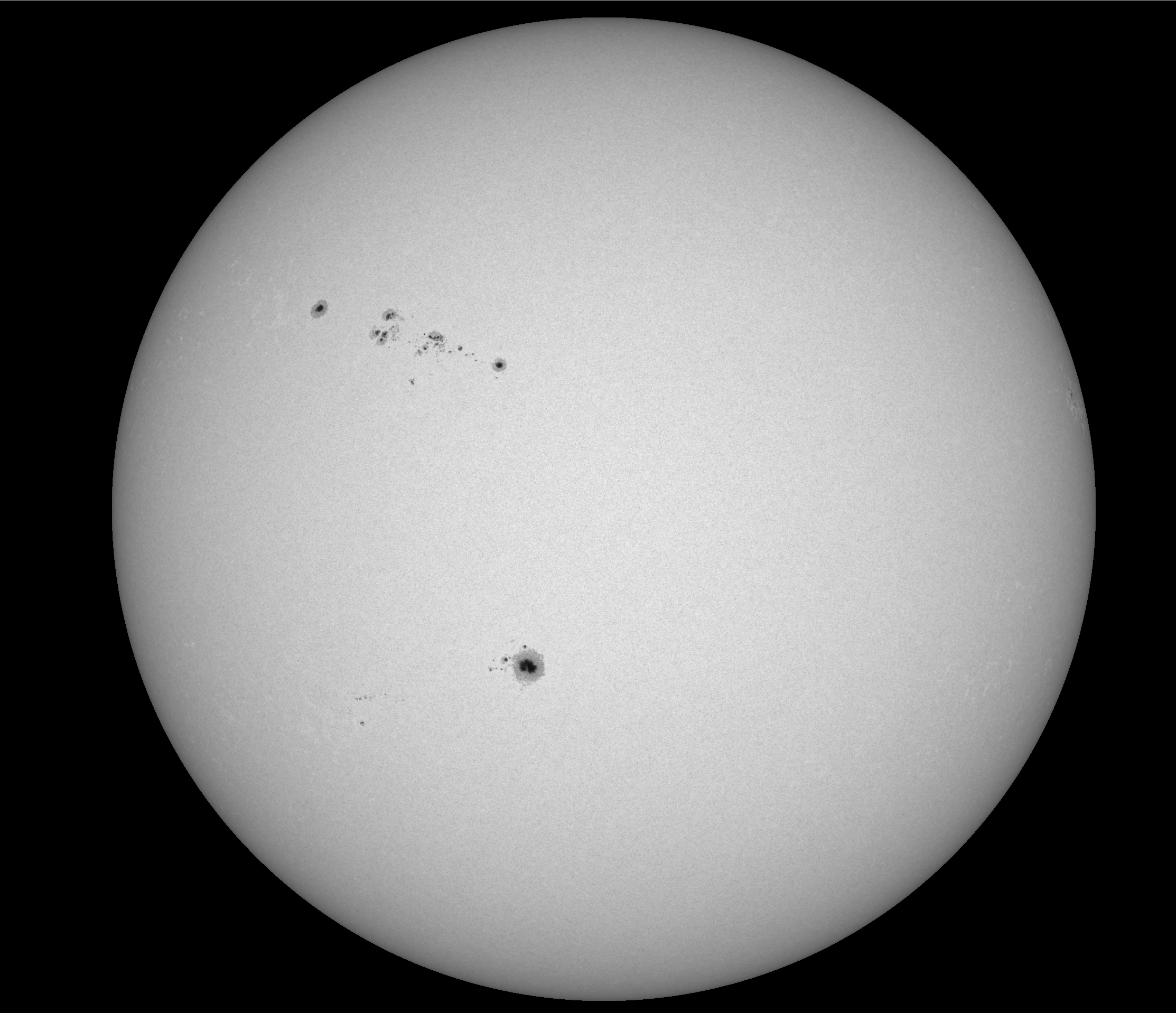 Še slika Sonca v vidni svetlobi, ki jo je 24. maja posnel Solar Dynamics Observatory (SDO), narejena pa je s JHelioviewer: