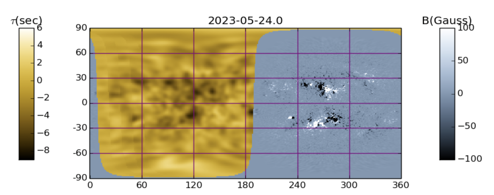 Bele ter črne lise na nam vidni strani pomenijo močne koncentracije Sončevega magnetnega polja, kar pomeni, da nam kažejo položaj aktivnih območij v koroni ali Sončevih peg v fotosferi. Črne lise na nam nevidni strani prav tako prikazujejo položaje Sončevih peg. Nekatere izmed njih se nam bodo pokazale že v prihodnjih dneh!