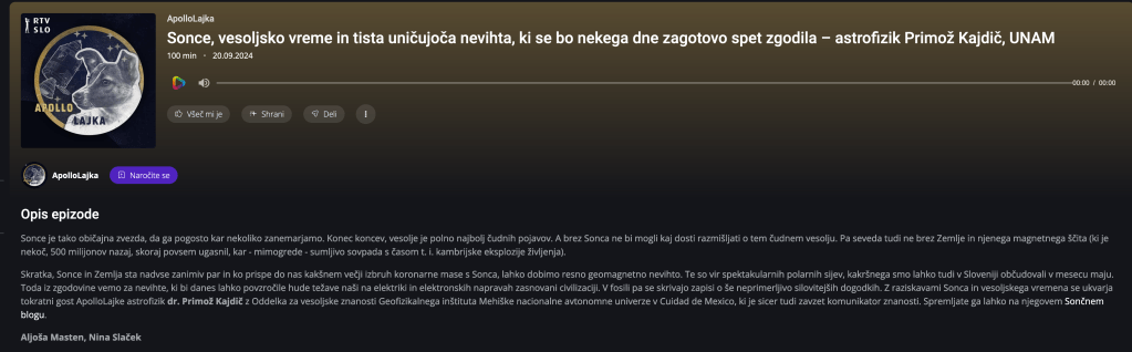 🇸🇮 Malo zaradi počitnic, malo zaradi delovnega obiska na Kitajskem smo bili zadnje časena Sončnem blogu nekoliko (pre)tihi. Kljub temu pa se lahko pohvalimo z nastopom na odličnem znanstvenem podcastu RTV Slovenija ApolloLajka, ki je bil objavljen pred kratkim.