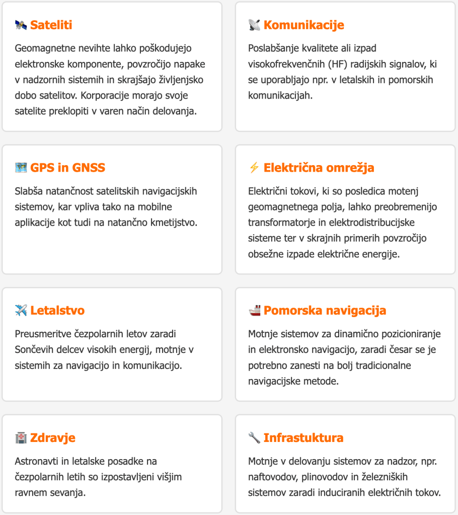 - Zaradi geomagnetnih neviht letalske družbe spremenijo trase čezpolarnih letov, kar jih vsakič lahko stane tudi 100.000 USD.