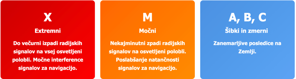 G3 (Intenzivne): Polarnih siji na geografskih širinah do 50°, težave s signalom za navigacijo in sateliti.