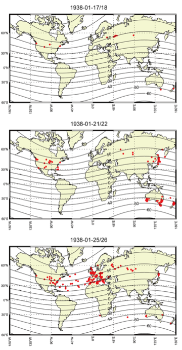 Januarja 1938, ko je bilo Sonce v maksimumu svoje aktivnosti, se ni zgodila le ena geomagnetna nevihta, ampak kar tri. Pa pojdimo lepo po vrsti.