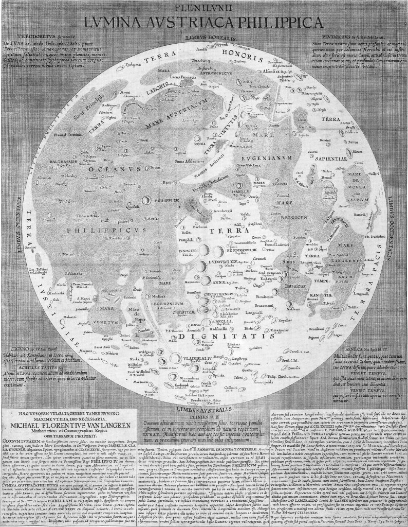 Prvi zemljevid Lune iz leta 1645, ki ga je naredil Michael van Langren.
