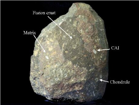 Pojdimo najprej v Mehiko. Meteorit Allende spada med tako imenovane hondrite. To so meteoriti, ki jih sestavljajo kamnine in predstavljajo okoli 80 % vseh meteoritov, ki padejo na Zemljo[6]. Nastali so, ko se je Sonce še komaj rojevalo. Takrat se je namreč okoli njega nahajal oblak snovi, ki ga astronomi imenujejo sončeva meglica. V njej so se dogajali močni blišči in strelam podobni pojavi, v ekvatorialni ravnini nastajajočega Sonca pa je bila ta meglica močno zgoščena v protoplanetarni disk, katerega temperatura je zaradi trenja v njem bila višja od 1300 K. Ko se je protoplanetarni disk ohlajal, se je material v njem kondenziral. Prve v njem nastale trdnine so bila z aluminijem in calcijem bogata zrna oz vključki[2,3].