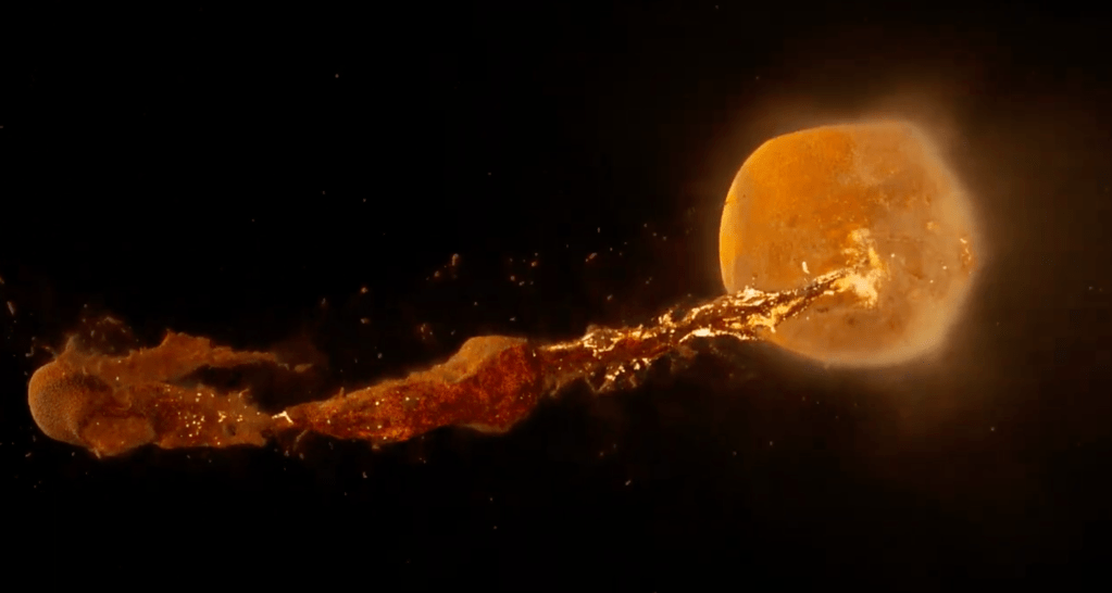 Računalniška simulacija trka Teje in Zemlje. Vir: Kegerris et al., 2022.