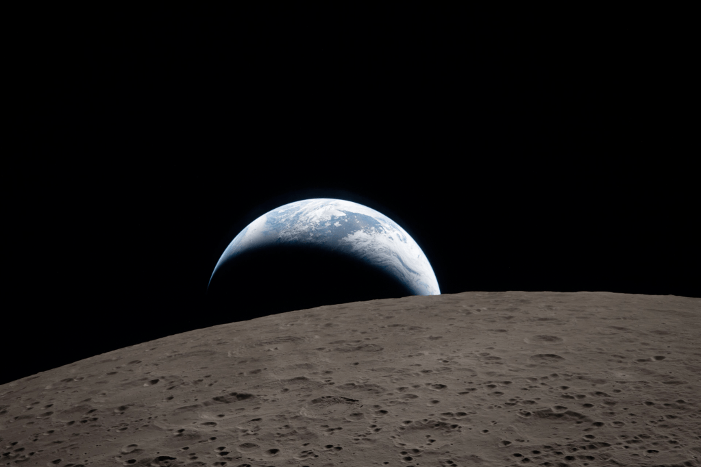 Zemljin zahod, ki ga je 6. aprila 2026 posnela posadka odprave Artemis 2. Vir: Wikipedija.